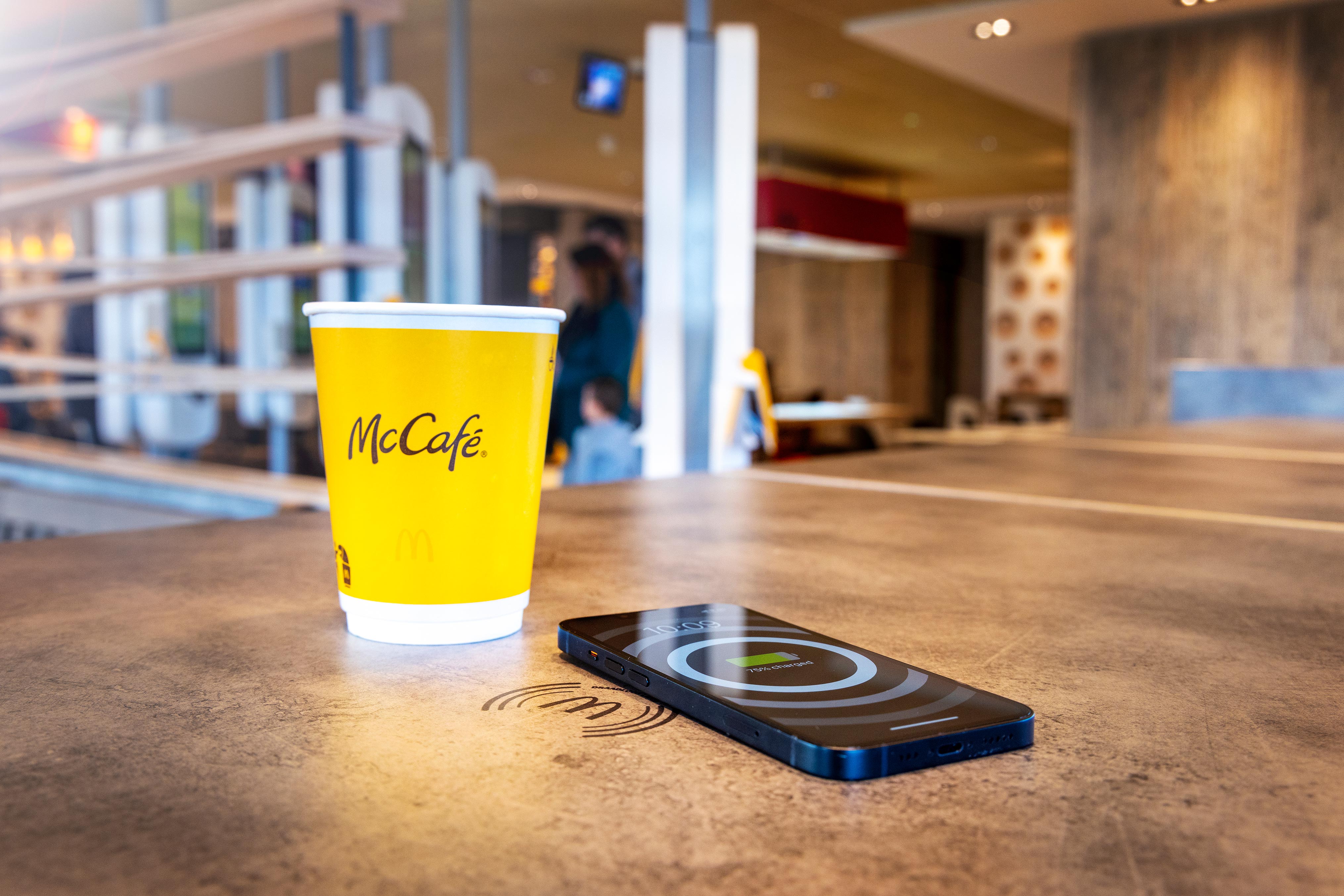 Across multiple McDonald’s locations in the Netherlands and Belgium, Zens wireless chargers are integrated directly into dining tables. Sub-surface installation ensures a clean, cable-free experience that blends seamlessly with the interior.