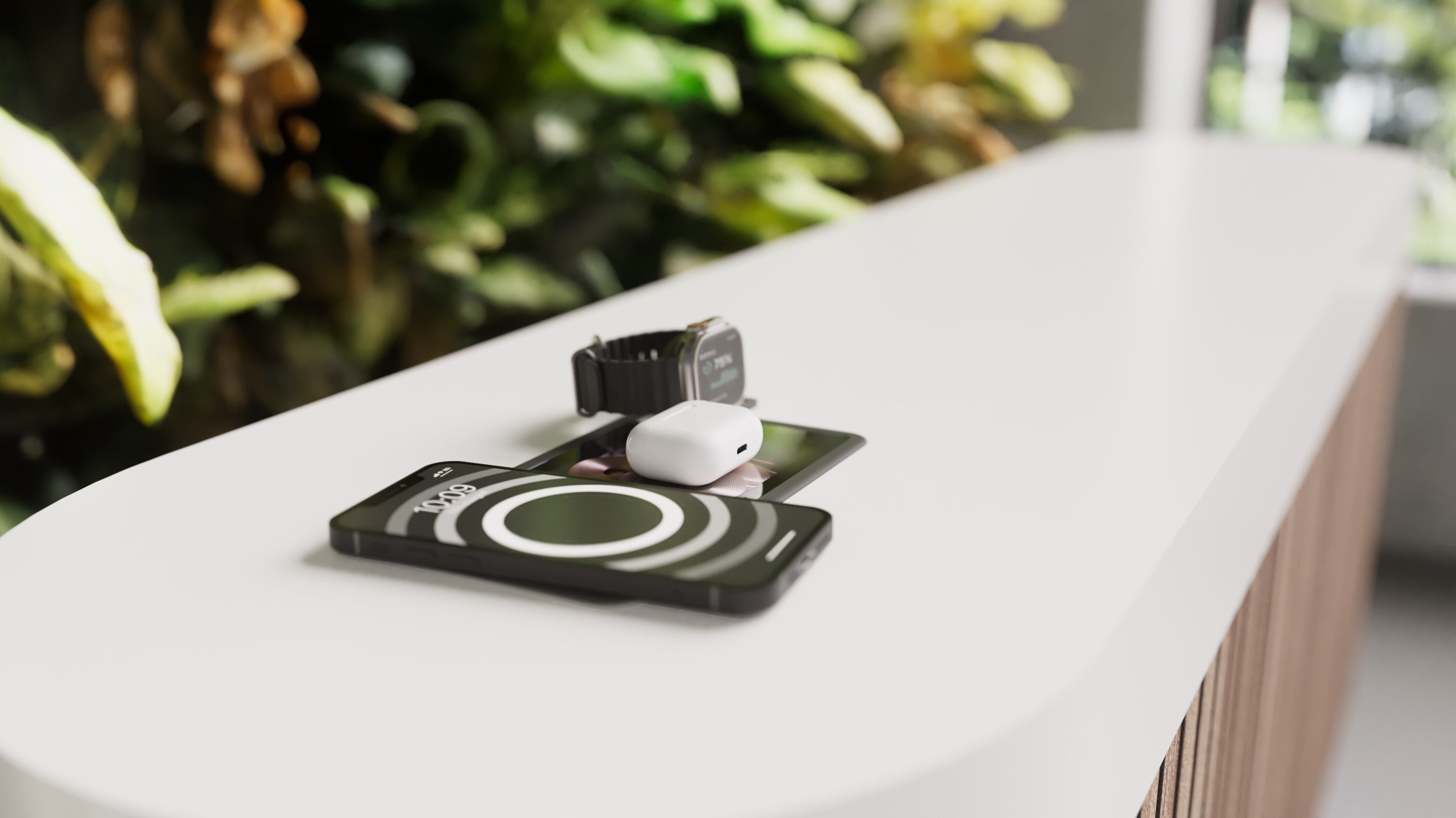 16 Wireless Charging Coils bieten maximale Freiheit bei der Platzierung und ermöglichen das gleichzeitige kabellose Laden von zwei Geräten. Der integrierte USB-A Port sowie ein 27W USB-C PD Port bieten zudem die Möglichkeit, ein Tablet, MacBook Air oder Ultrabook zu laden.