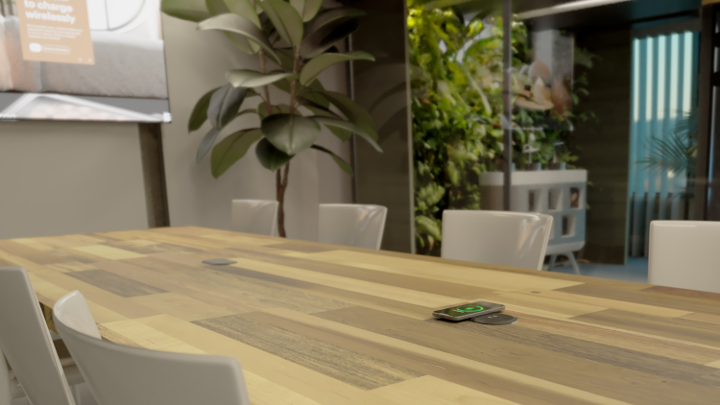 Met Zens draadloos opladen geïntegreerd in vergadertafels en samenwerkingsmeubilair is stroom altijd binnen handbereik, zonder zichtbaar te zijn. Zo zijn vergaderruimtes klaar voor de werkdag van vandaag én voorbereid op de toekomst.