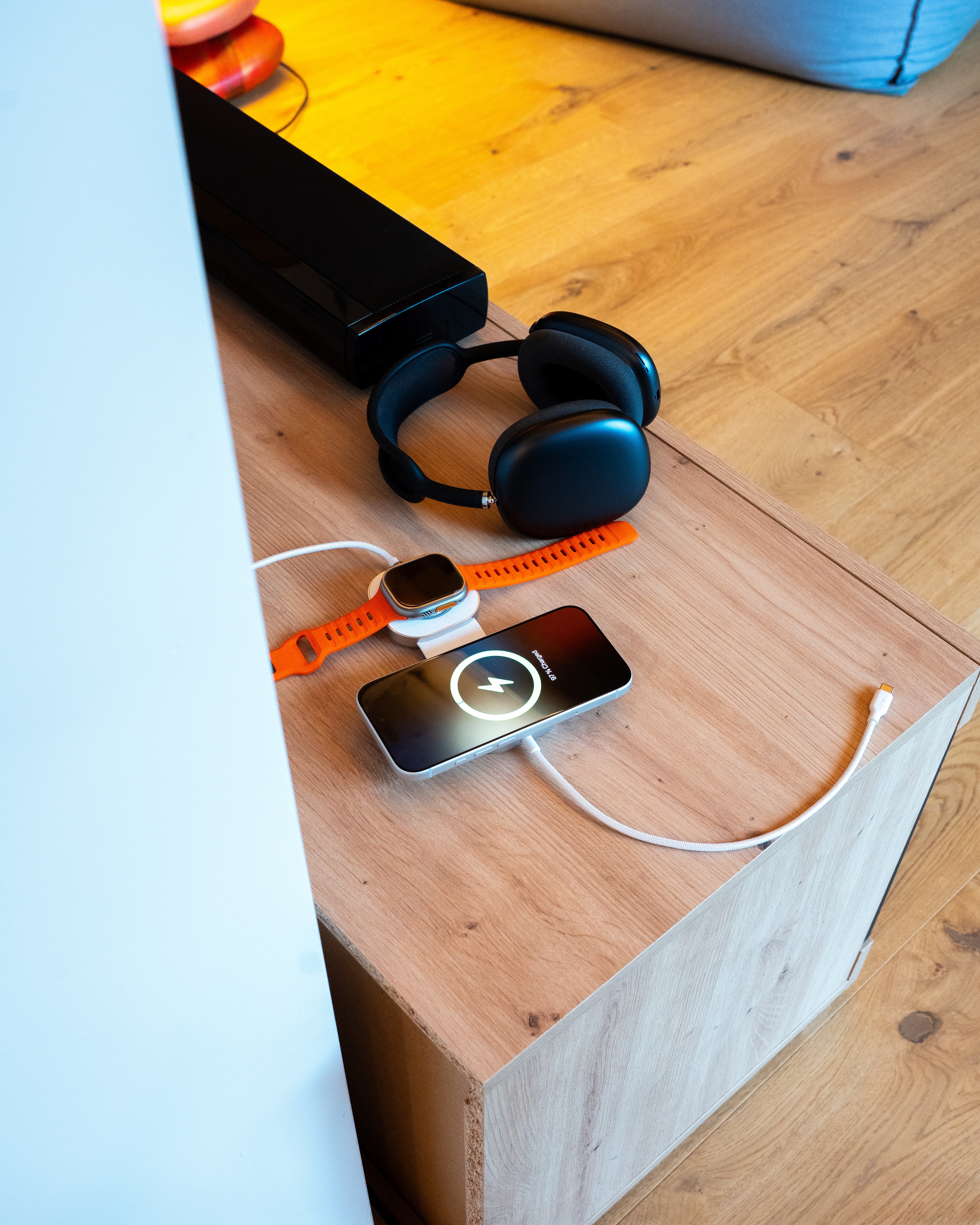 De 4-1 Wireless Charger laad al je Apple gadgets tegelijk op: iPhone, AirPods, Apple Watch, iPad of MacBook. Alles op één stijlvolle plek. Gemaakt voor wie waarde hecht aan slim design, functionaliteit en een perfect georganiseerde ruimte.