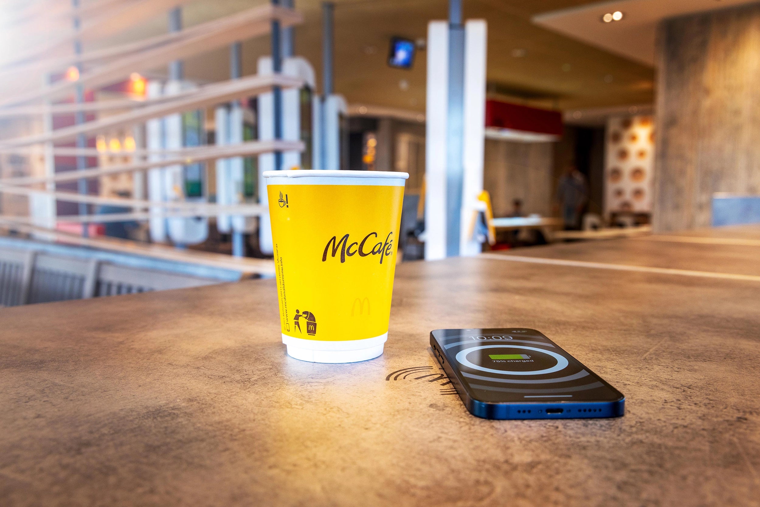 Elke dag zijn er in de restaurants van McDonald's miljoenen mensen te vinden, allemaal met hun mobiele apparaten. Om het leven van de klanten gemakkelijker te maken en de ervaring nog aangenamer te maken, heeft McDonald's in elke tafel draadloze opladers geïntegreerd, waardoor deze als onzichtbare energiebronnen fungeren.