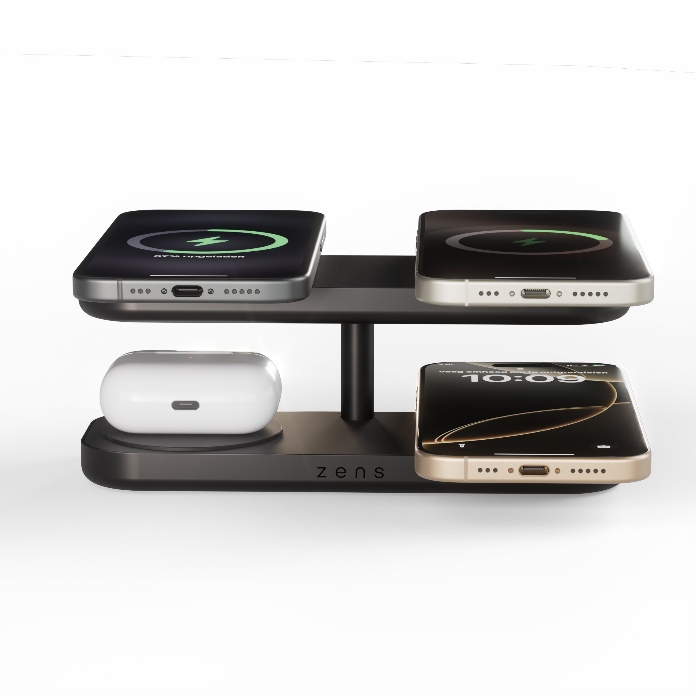 U kunt maximaal vier apparaten tegelijk opladen: iPhones, Android-telefoons met magnetische hoesjes, AirPods en meer, dankzij de vier magnetische Qi2-oplaadpunten.