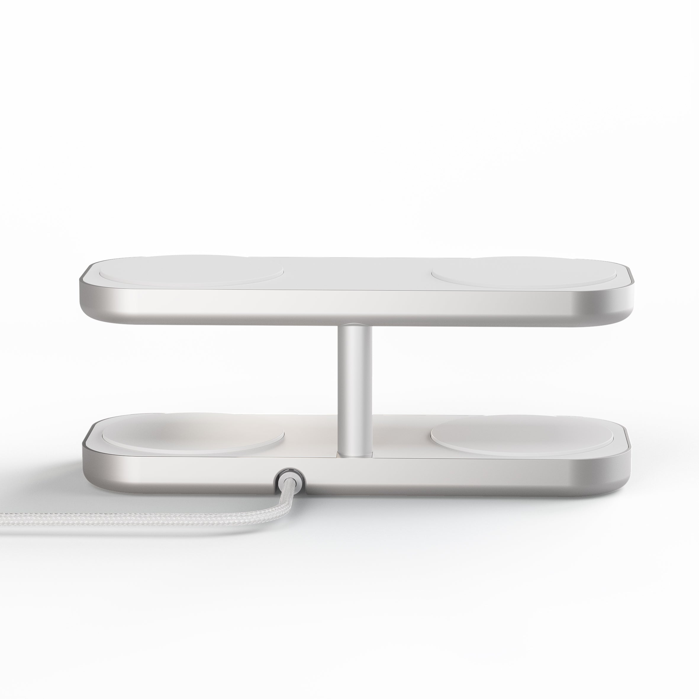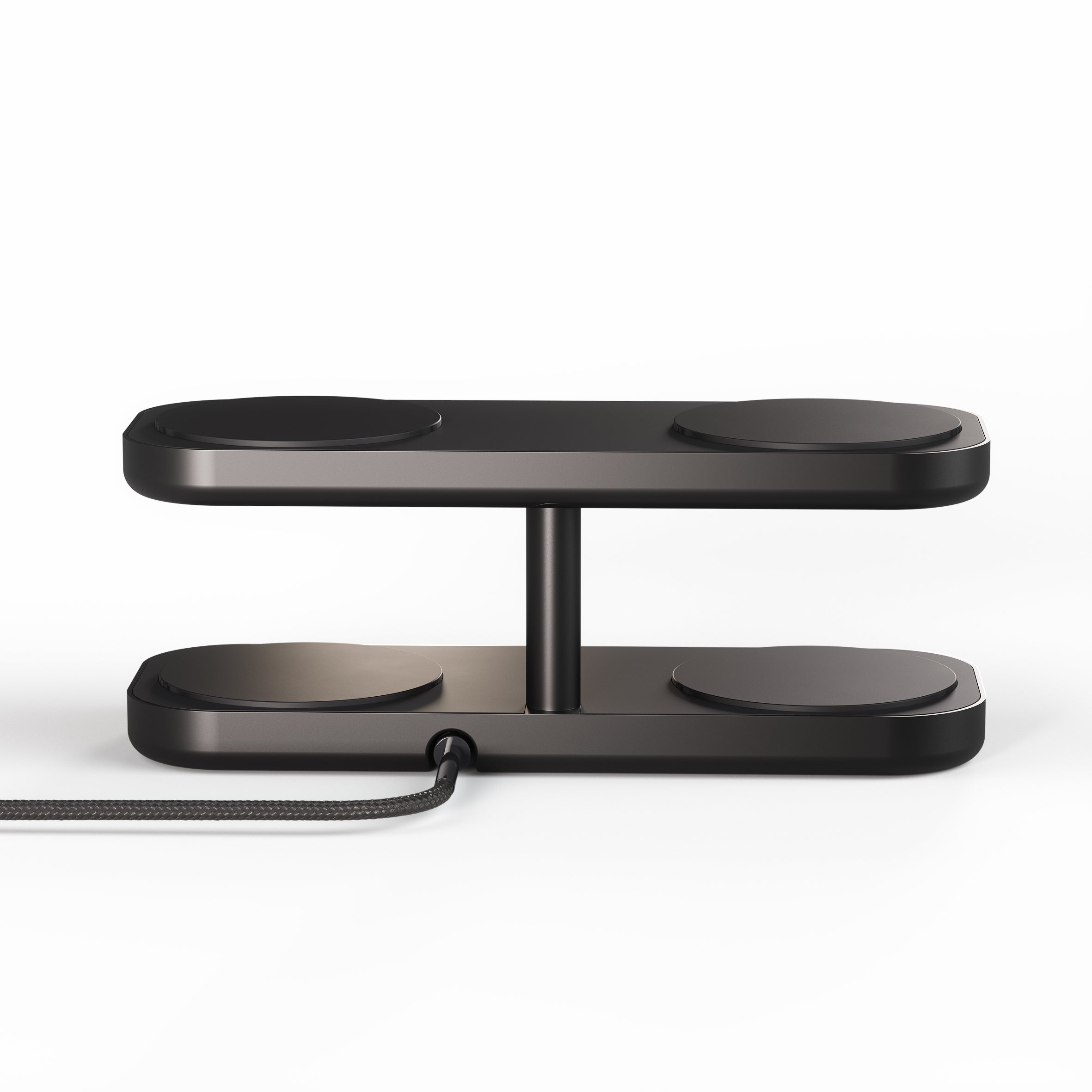 Hij beschikt over vier volledig magnetische Qi2-laadpunten, voor een perfecte uitlijning en snel en efficiënt draadloos opladen tot 15 W per apparaat. Hij is gemaakt van hoogwaardige zinklegering en wordt geleverd met een krachtige 65 W-adapter.