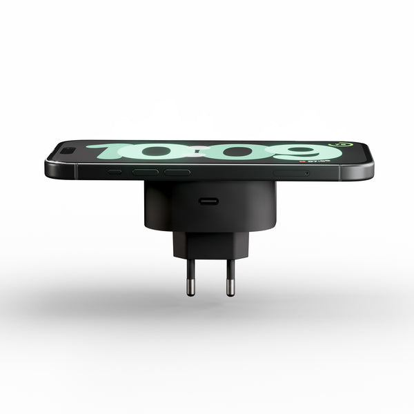 Compact, draadloos en ontworpen voor dagelijks gebruik, is de Wireless Charging Adapter is perfect voor opladen onderweg. Met een EU-stekker en een magnetisch, eendelig ontwerp is hij schokbestendig genoeg om zonder zorgen in je tas te stoppen. Ideaal voor plekken waar stopcontacten op ooghoogte zitten.