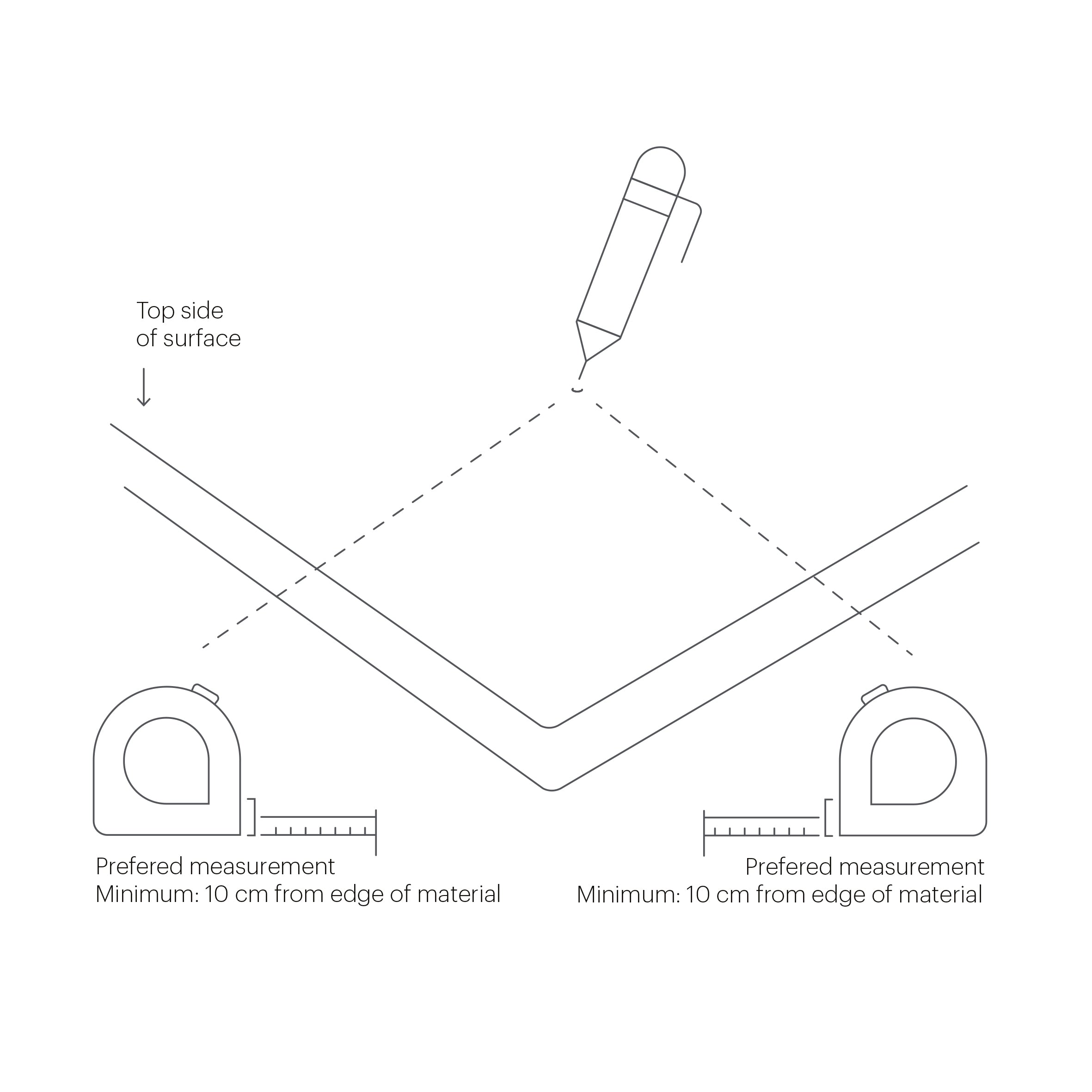 1.) Measure a distance with a minimum of 20 cm from the edge of the material