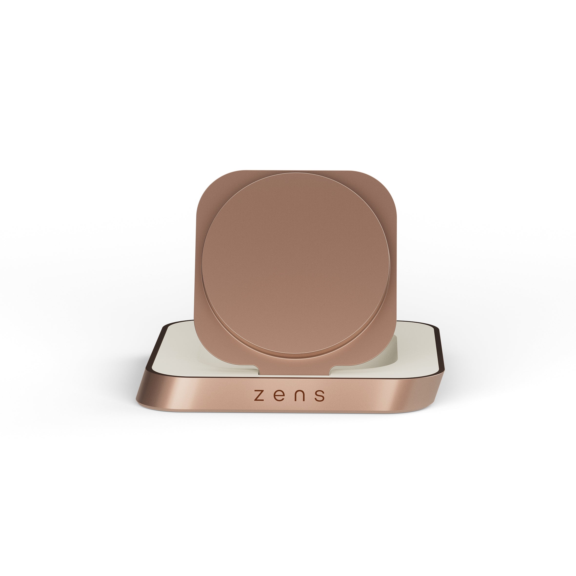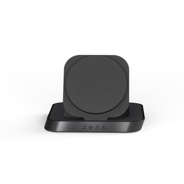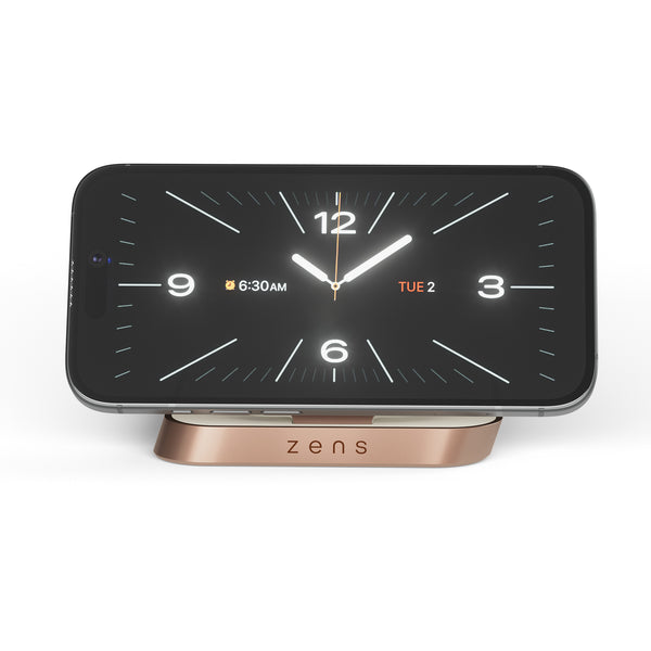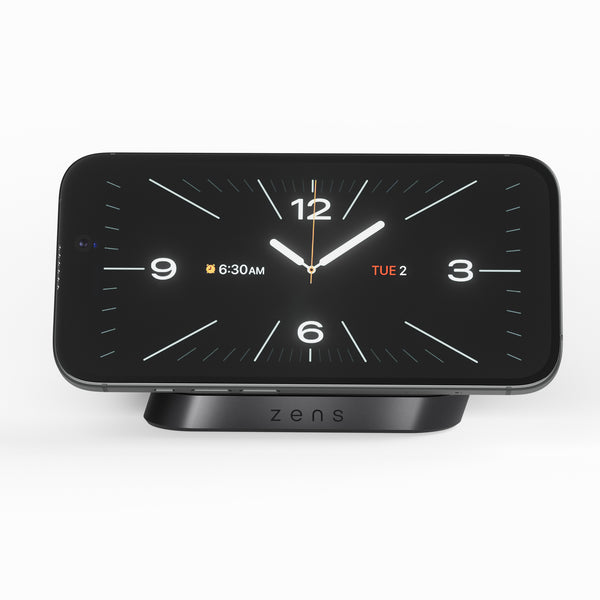 Transform your nightstand into a sleek charging station and replace your outdated alarm clock with ease using the Zens Magnetic Nightstand Charger. Effortlessly charge your iPhone 12 and up, or your AirPods / Android phone with a magnetic case, without messy cables. Crafted from durable Zinc/Alloy, it ensures lasting performance with 15W fast charging, supporting Apple fast charge at 7.5W. Its unique magnetic design supports both portrait and landscape charging.